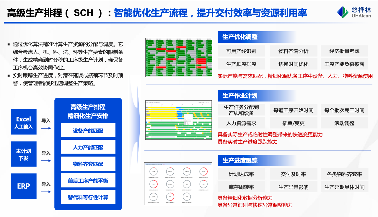 悠桦林作为专注于提供生产管理系统解决方案的公司,其APS排程系统具有诸多功能特点。该系统具备强大的计划优化功能,能综合考虑各种生产约束条件,如设备产能、物料供应、交货期等,利用先进的算法制定出最优的生产计划。系统拥有实时的排程能力,可实时收集生产过程中的各种数据,快速响应生产变化,及时调整生产计划。而且,悠桦林APS排程系统的操作界面友好,具有高度的可配置性,用户可以根据自身企业的实际情况进行个性化设置。系统还支持与其他管理系统的集成,实现数据的无缝对接,为企业提供全面的生产管理解决方案。