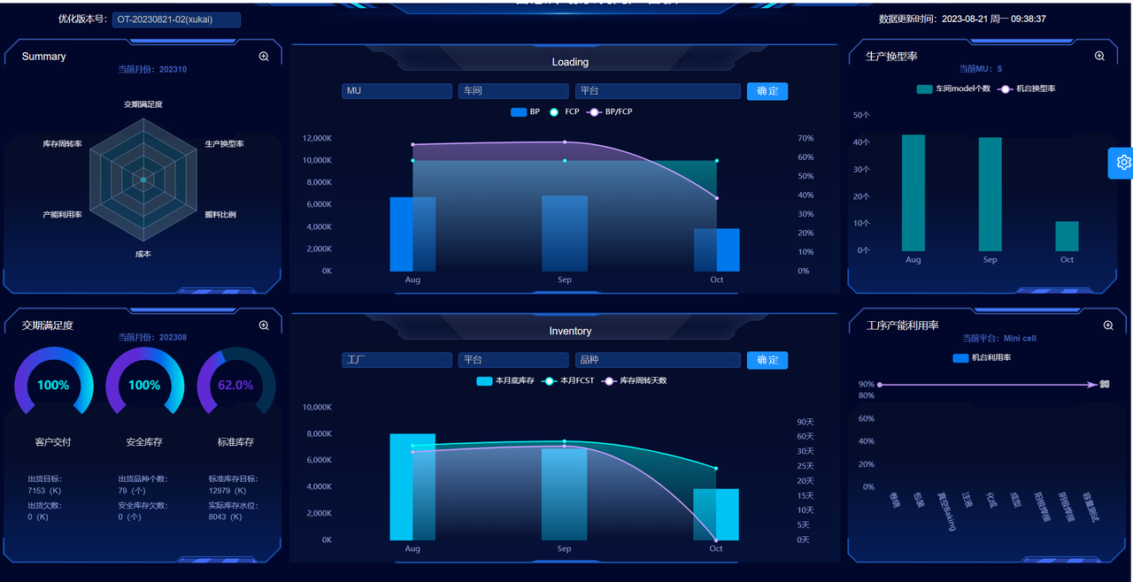 “如果说之前不同分工厂是各自为战的独立个体,那么智能供应链计划则是让它们形成一条协同作战的纽带”,李峰感慨道。以智能决策技术为核心的“智能供应链计划与排程解决方案”为本就“聪敏”的该锂电企业供应链管理系统锦上添花,它从全局优化的视⻆对资源进行合理调度,覆盖多个生产区,提供主计划层面的产能和物料供应等全面规划。