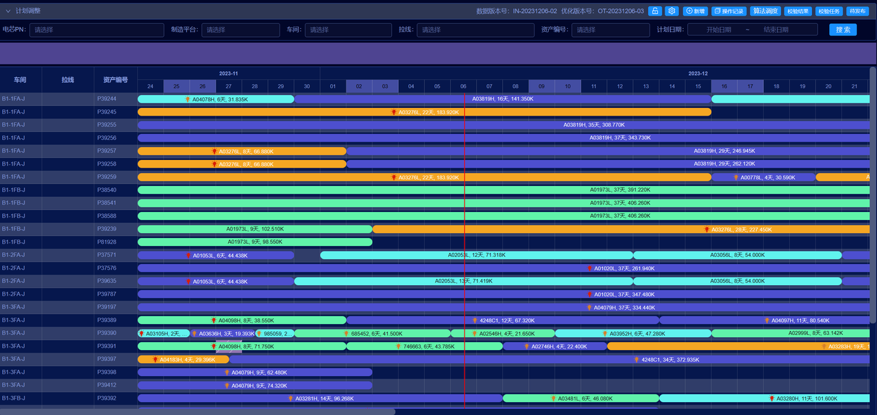 直到“智能供应链计划与排程一体化平台”落地,该锂电企业的数十个生产车间、上百条产线实现了计划流程的智能化、可视化。从人员、设备、物料精确到工序级别,分钟级的排程计划串联起整个企业的数据链,推动了跨部门间的协同。