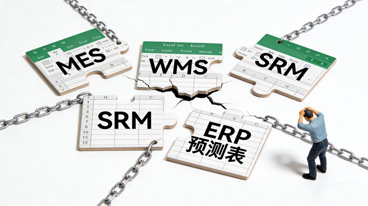生产在 MES,库存在 WMS,供应数据在 SRM,销售预测又在 ERP 之外。 每做一次计划,都要导几十个表、对几十个字段。 计划像“拼图”,拼得慢,还容易拼错。