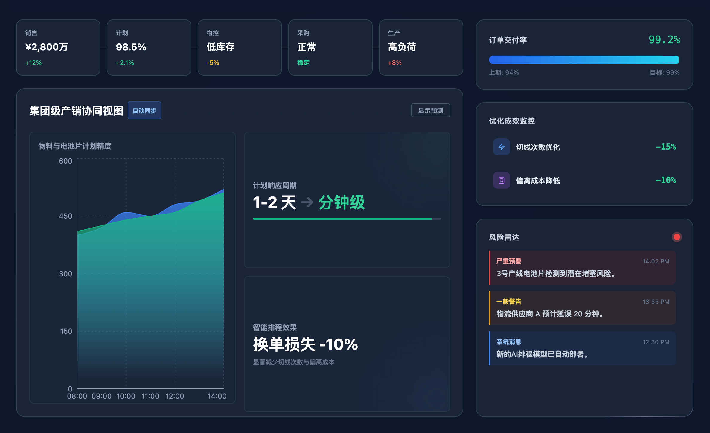 不同区域需求、多电池类型产能与长期库存的动态平衡,是典型的“人工汇总难、系统测算优”的场景。