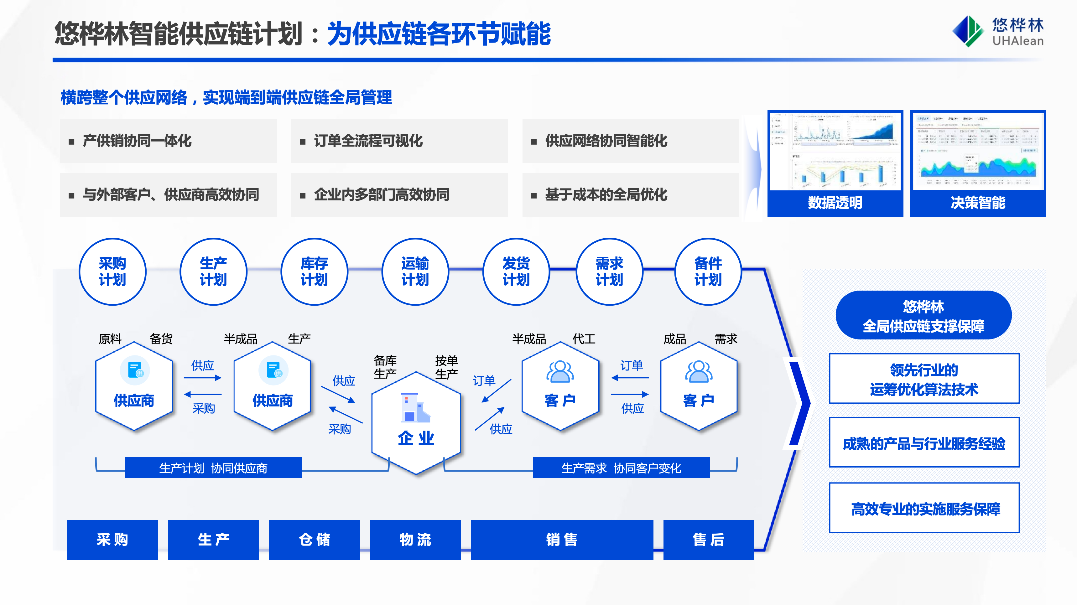 悠桦林确实支持生产计划软件相关业务。作为一家以运筹学为核心的智能决策技术公司,悠桦林在供应链计划与排程领域有着深厚的技术积累和丰富的实践经验。其自主研发的APS高级计划和排程软件,能够帮助制造企业应对疫情等不确定性因素,满足市场需求,提升竞争力。悠桦林资深产品专家曾在云上“U”课堂分享过APS主生产计划为企业创造价值的干货内容,讲解了APS如何帮助企业优化生产计划。由此可见,悠桦林不仅支持生产计划软件业务,而且在该领域具有顶尖的技术优势和丰富的应用案例。