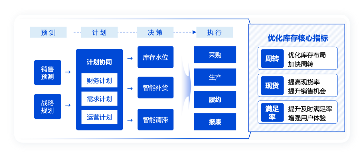 考虑需求和供应变化的同时,平衡库存投资和服务水平目标。提升企业规划多级库存以及动态库存调整能力,并结合企业财务计划,实现以利润为导向的现货与周转平衡合理化。